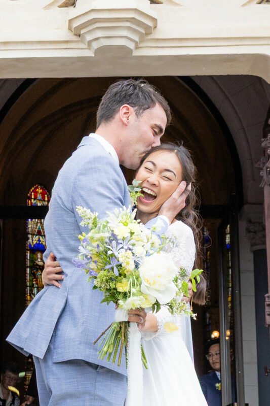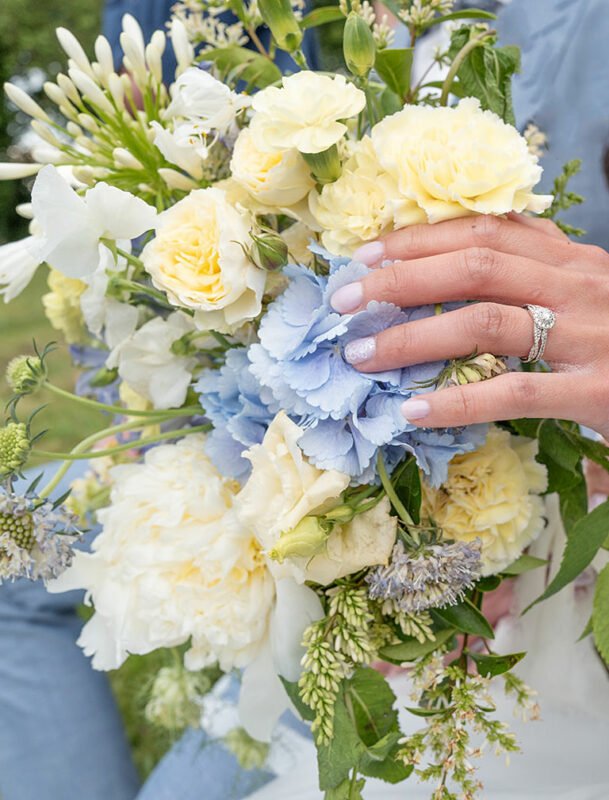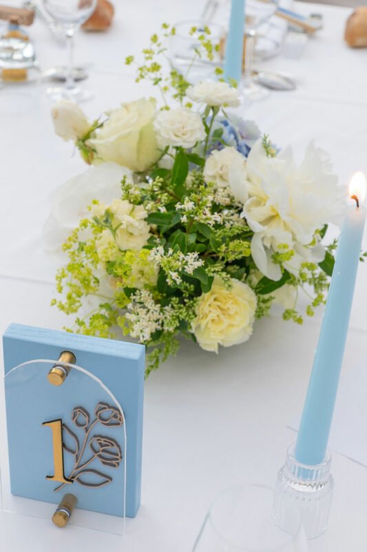 Cultures mixtes, si raffinées. Les fiancés ont choisis une délicieuse palette de pastel bleu glacier, crème et quelques touches de jaune…